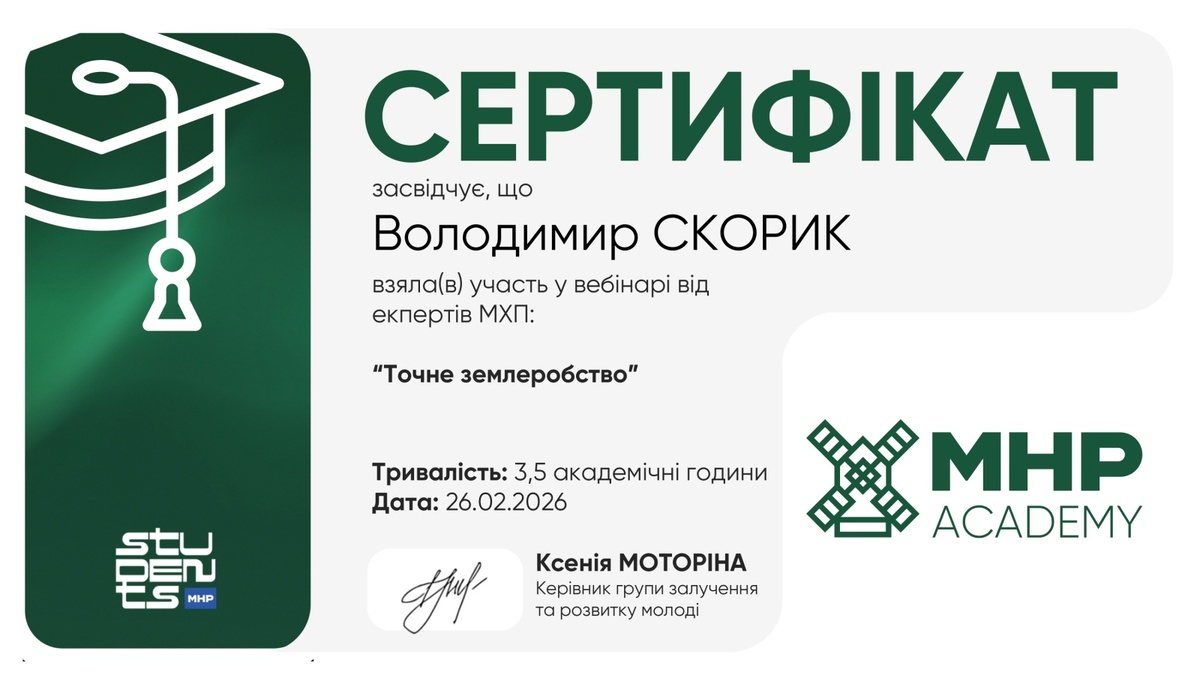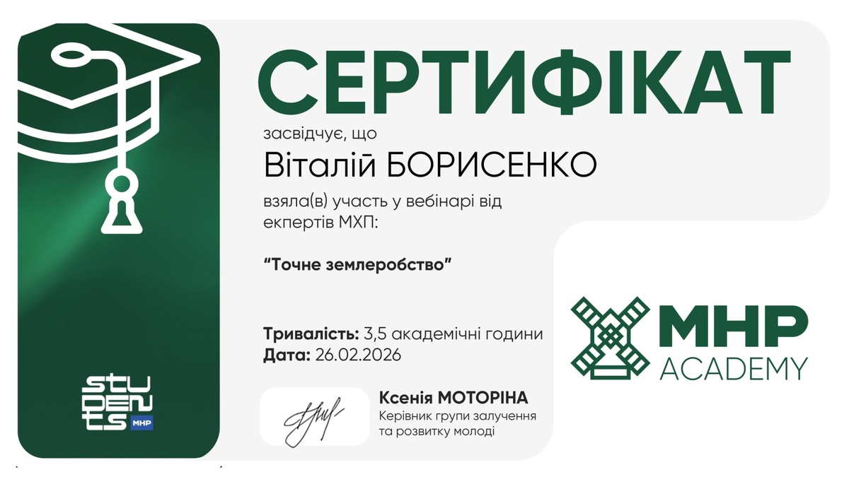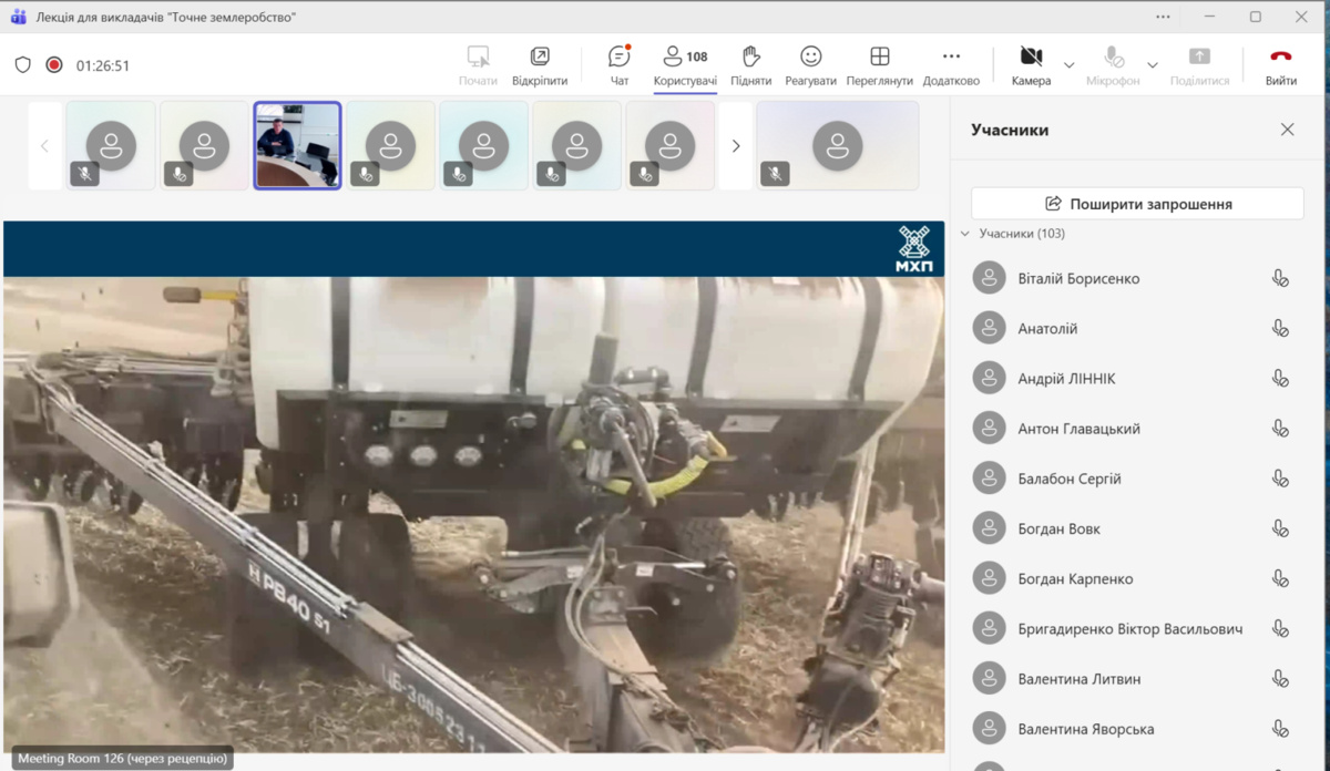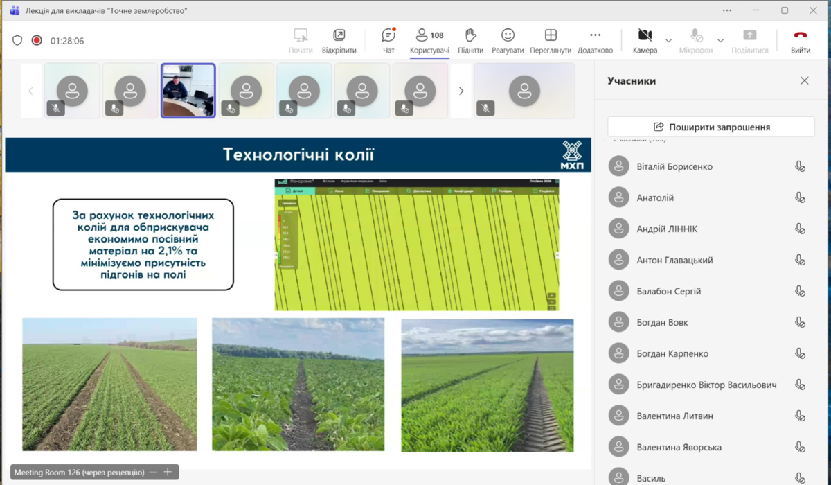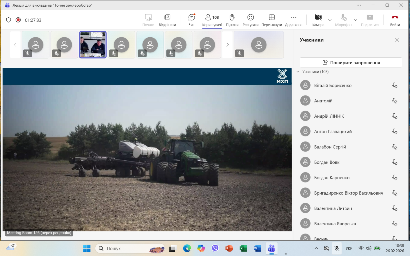 26 лютого 2026 року науково-педагогічні працівники та аспіранти кафедри загального землеробства взяли участь в онлайн-зустрічі з експертами компанії МХП та долучилися до лекції на тему «Точне землеробство».