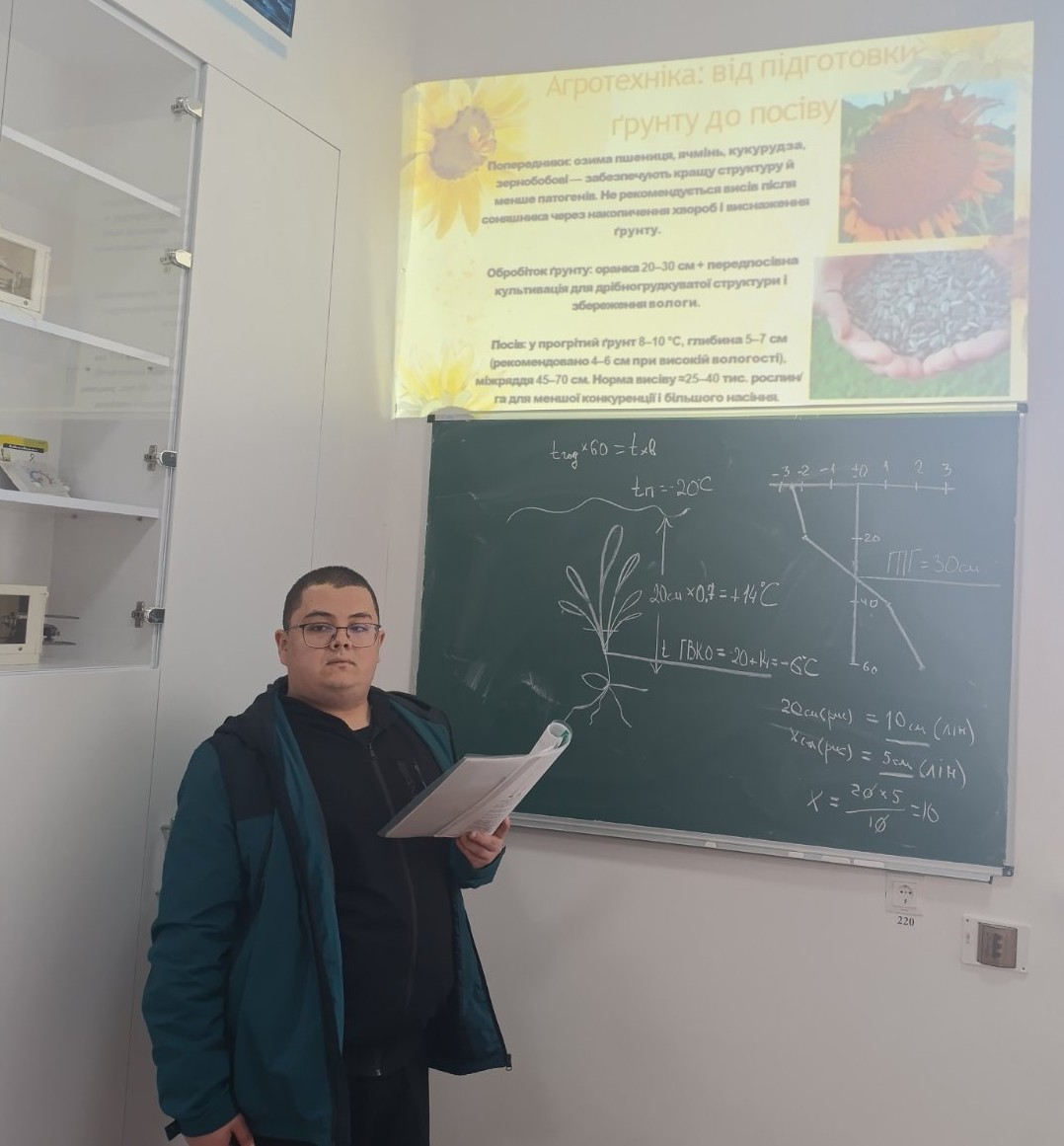 Захід об’єднав здобувачів вищої освіти, які представили результати власних наукових досліджень. У ході засідання було розглянуто актуальні питання сучасного землеробства, зокрема особливості обробітку ґрунту в умовах змін клімату, удосконалення сівозмін, а також впровадження елементів органічного виробництва.